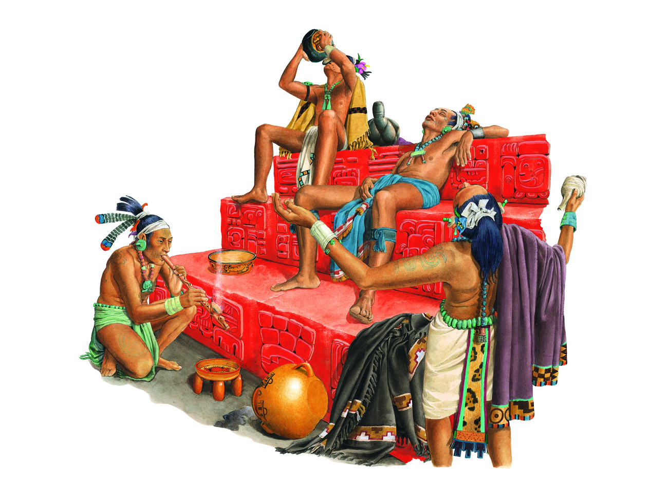 I sacerdoti durante i riti sacri bevevano alcol e assumevano droghe per raggiungere uno stato mentale di estasi nel quale sarebbero entrati in contatto con gli dei.