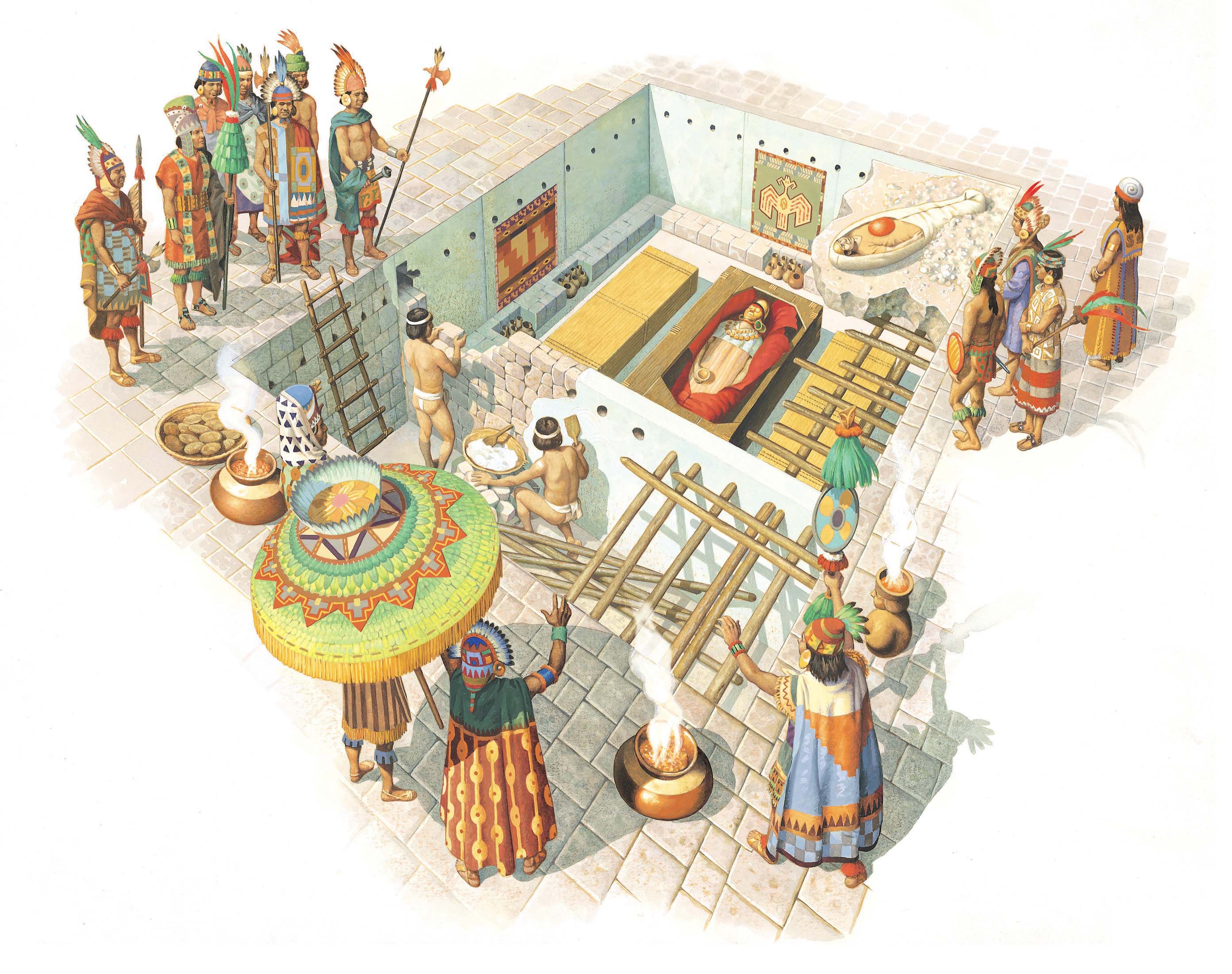 Dopo la morte, i sovrani venivano sepolti, con cerimonie sacre, nel tempio del sole, mentre il palazzo dove erano vissuti diventava un santuario a loro dedicato.