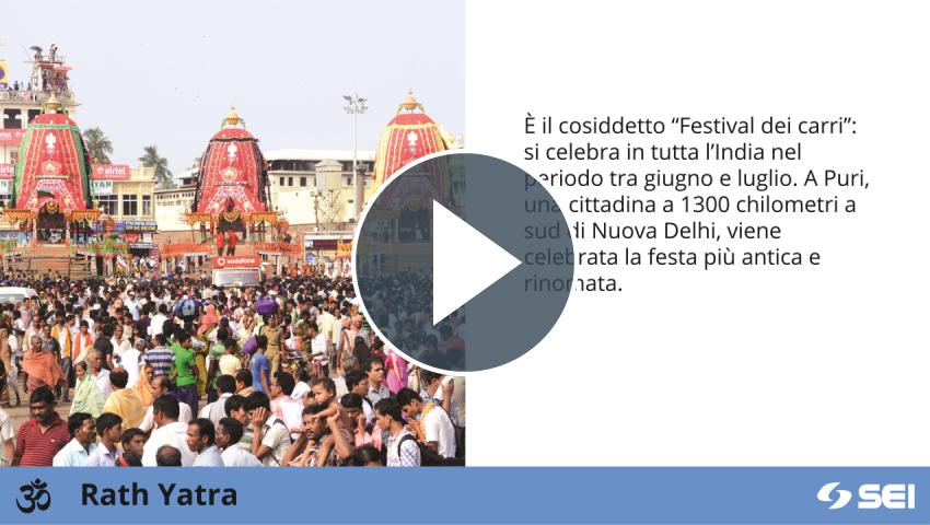 È il cosiddetto "Festival dei carri": si celebra in tutta l'India nel periodo tra giugno e luglio. A Puri, una cittadina a 1300 chilometri a sud di Nuova Delhi, viene celebrata la festa più antica e rinomata.