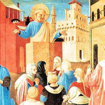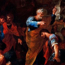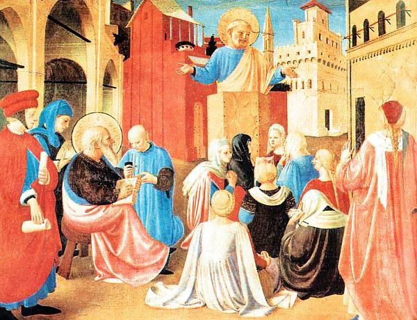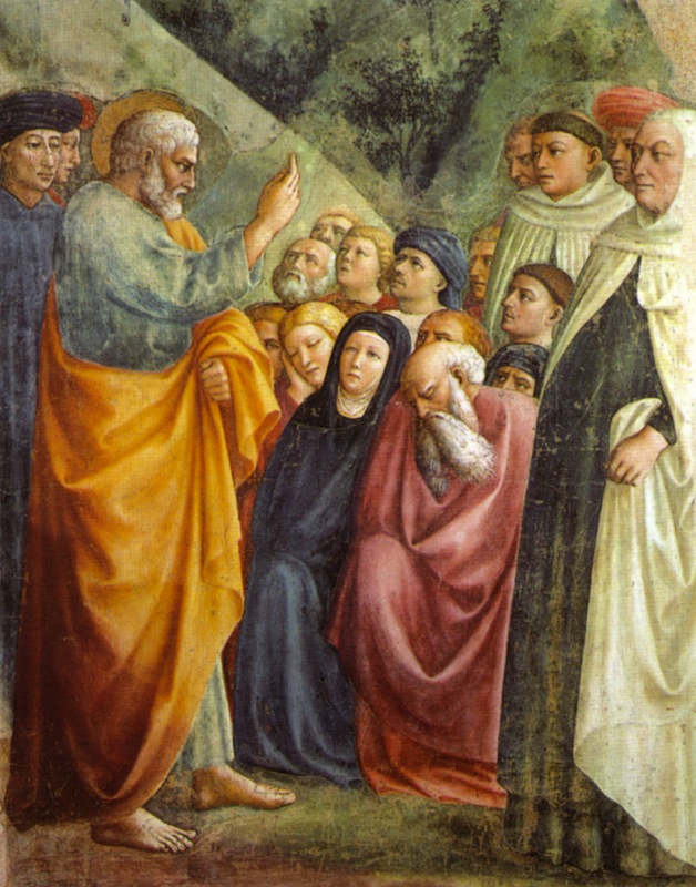Allora Pietro con gli Undici si alzò in piedi e a voce alta parlò a loro così: “Uomini di Giudea, e voi tutti abitanti di Gerusalemme, vi sia noto questo e fate attenzione alle mie parole…”Atti deli Apostoli 2,14 sgg.