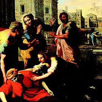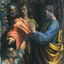 Avvenne poi che, circa tre ore più tardi, entrò sua moglie, ignara dell’accaduto. Pietro le chiese: «Dimmi: è a questo prezzo che avete venduto il campo?». Ed ella rispose: «Sì, a questo prezzo». Allora Pietro le disse: «Perché vi siete accordati per mettere alla prova lo Spirito del Signore? Ecco qui alla porta quelli che hanno seppellito tuo marito: porteranno via anche te». Ella all’istante cadde ai piedi di Pietro e spirò. Quando i giovani entrarono, la trovarono morta, la portarono fuori e la seppellirono accanto a suo marito.Atti degli Apostoli 5,1-10