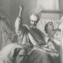 In quella notte, quando Erode stava per farlo comparire davanti al popolo, Pietro, piantonato da due soldati e legato con due catene, stava dormendo, mentre davanti alle porte le sentinelle custodivano il carcere. Ed ecco, gli si presentò un angelo del Signore e una luce sfolgorò nella cella. Egli toccò il fianco di Pietro, lo destò e disse: «Àlzati, in fretta!». E le catene gli caddero dalle mani.