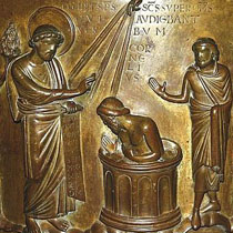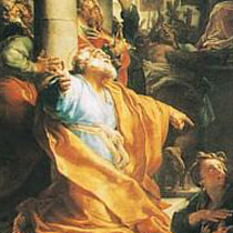 Pietro e Giovanni salivano al tempio per la preghiera delle tre del pomeriggio. Qui di solito veniva portato un uomo, storpio fin dalla nascita; lo ponevano ogni giorno presso la porta del tempio detta Bella, per chiedere l’elemosina a coloro che entravano nel tempio. Costui, vedendo Pietro e Giovanni che stavano per entrare nel tempio, li pregava per avere un’elemosina. Allora, fissando lo sguardo su di lui, Pietro insieme a Giovanni disse: «Guarda verso di noi». Ed egli si volse a guardarli, sperando di ricevere da loro qualche cosa. Pietro gli disse: «Non possiedo né argento né oro, ma quello che ho te lo do: nel nome di Gesù Cristo, il Nazareno, àlzati e cammina!». Lo prese per la mano destra e lo sollevò. Di colpo i suoi piedi e le caviglie si rinvigorirono e, balzato in piedi, si mise a camminare; ed entrò con loro nel tempio camminando, saltando e lodando Dio.Atti degli Apostoli 3,1-8