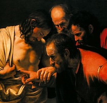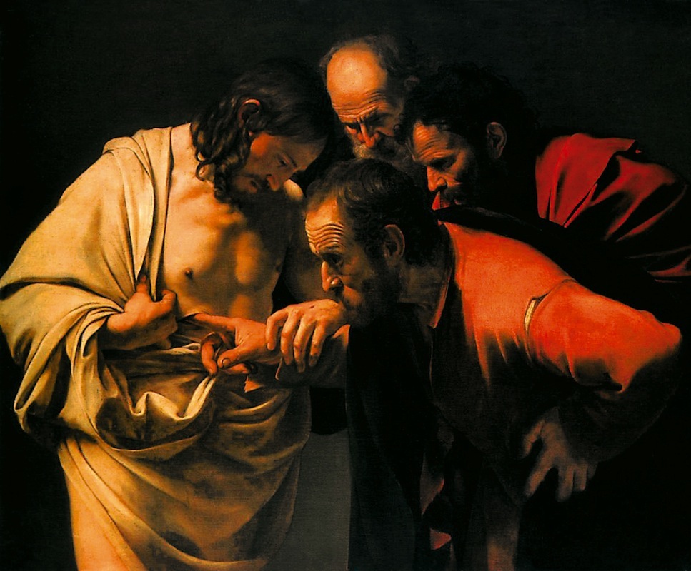 Nell’iconografia, la rappresentazione di gran lunga più frequente è quella che mostra Tommaso in atto di porre il dito nella piaga del costato di Gesù.
