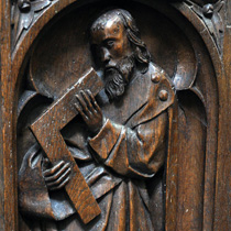 Altri attributi iconografici, meno frequenti, sono la cintura della Vergine, caduta miracolosamente ai piedi di Tommaso per fugare la sua incredulità, e la squadra, che allude alla progettazione del palazzo per il re dell’India.