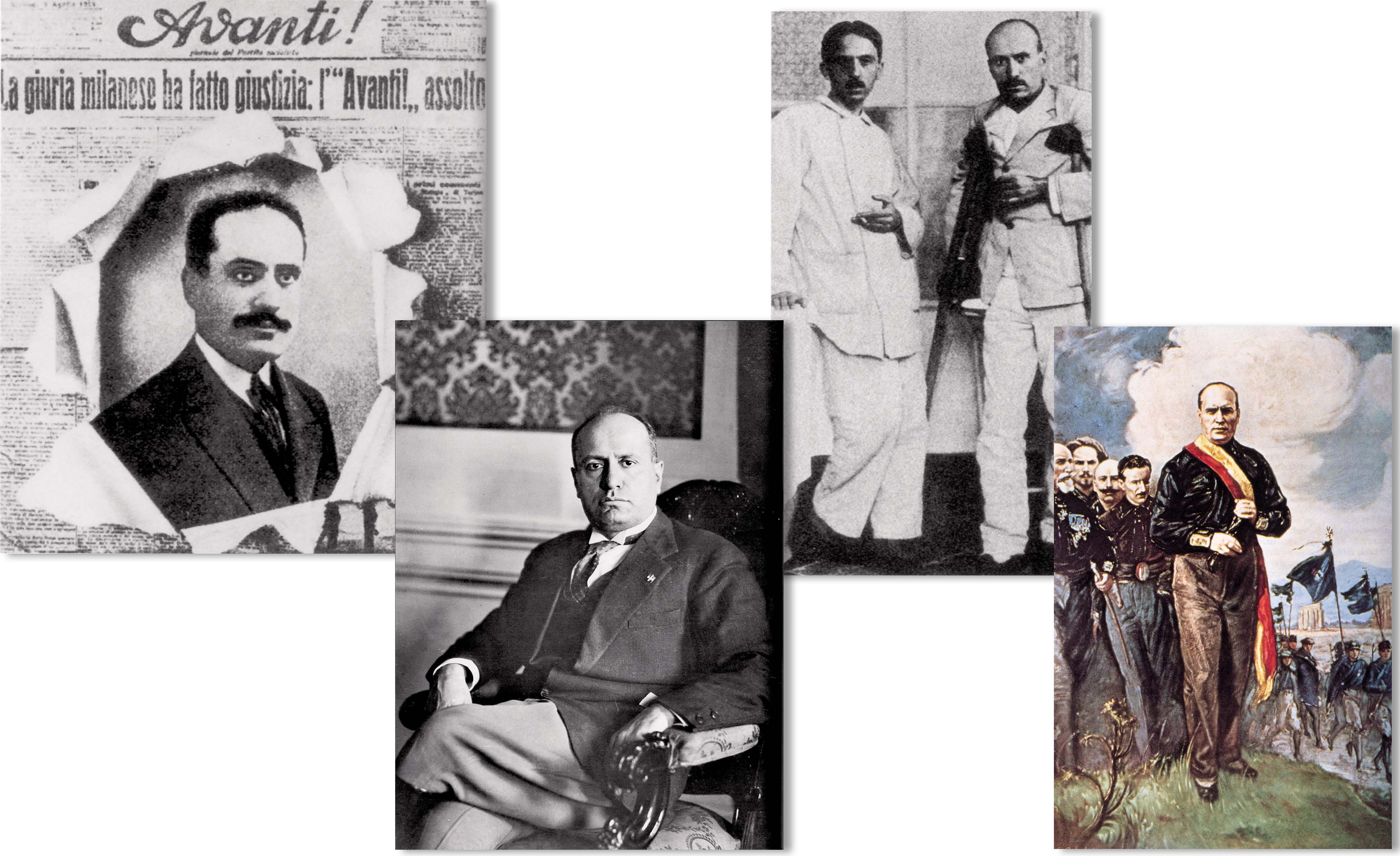 Nel 1919 Mussolini fondò il Movimento dei Fasci di Combattimento e il suo aspetto è quello aggressivo del capo militare. Qui lo vediamo in camicia nera, la divisa delle squadracce fasciste.