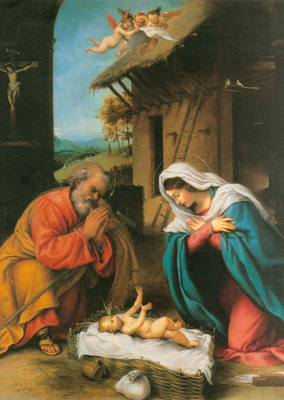 «In quei giorni uscì un editto di Cesare Augusto che ordinava il censimento di tutta la terra. Questo primo censimento fu fatto quando Quirino era governatore della Siria. Tutti andavano a dare il loro nome, ciascuno nella propria città. Anche Giuseppe dalla Galilea, dalla città di Nazaret, salì nella Giudea, alla città di Davide, che si chiamava Betlemme, perché egli era della casa e della famiglia di Davide, per dare il suo nome con Maria, sua sposa, che era incinta. Mentre si trovavano là, giunse per lei il tempo di partorire e diede alla luce il suo figlio primogenito. Lo avvolse in fasce e lo depose in una mangiatoia, perché per loro non c’era posto all’albergo.»