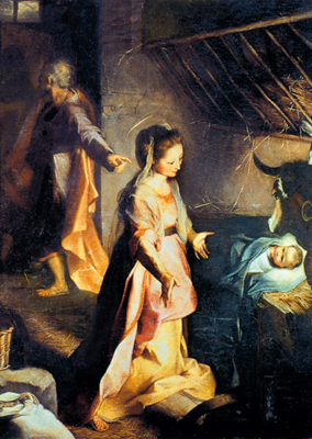 Con Natività si intende la nascita di Gesù dalla Vergine Maria assistita da san Giuseppe. Avvenne a Betlemme, un paese loco lontano da Gerusalemme, in un luogo (grotta, o capanna) presumibilmente adibito a stalla (Luca, nel suo Vangelo, cita esplicitamente «una mangiatoia»). Secondo un’antica tradizione, basata sul vangelo apocrifo detto dello pseudo-Matteo, un bue e un asinello provvidero al riscaldamento del neonato. La data della Natività è convenzionalmente fissata al 25 dicembre, esattamente nove mesi dopo che l’arcangelo Gabriele ebbe annunciato a Maria il concepimento di un bambino a opera dello Spirito Santo.